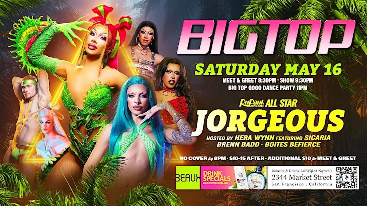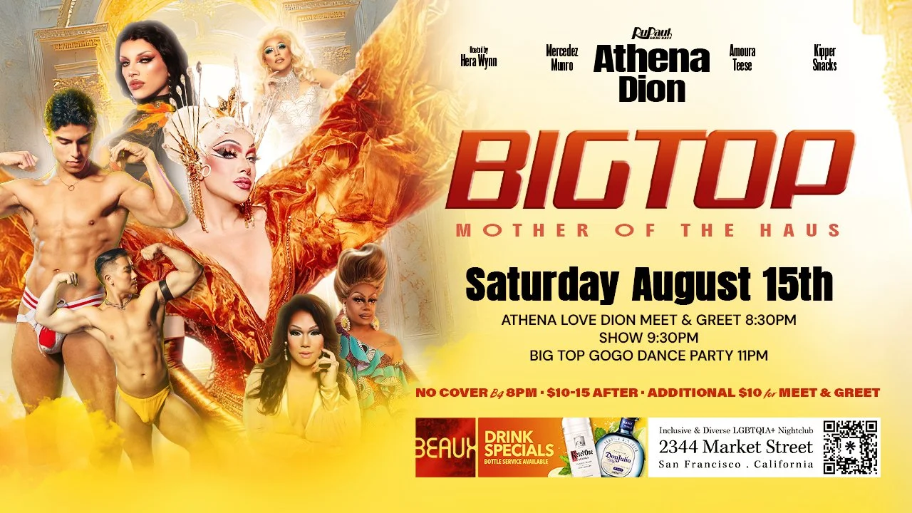 Big Top drag show is hosted by the iconic SF diva, Hera Wynn with an amazing cast of performers.